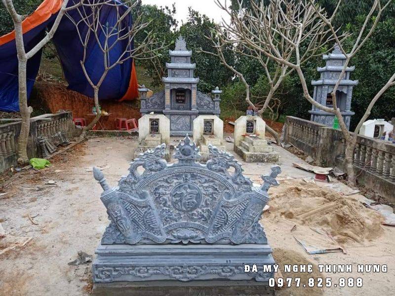 Mẫu Lăng mộ đá dưới 60 triệu đồng của gia đình Bác Thắng tại Hà Nam, gồm có 01 lăng thờ đá cánh phong ba mái và 01 cuốn thư đá xanh tự nhiên, nguyên khối.