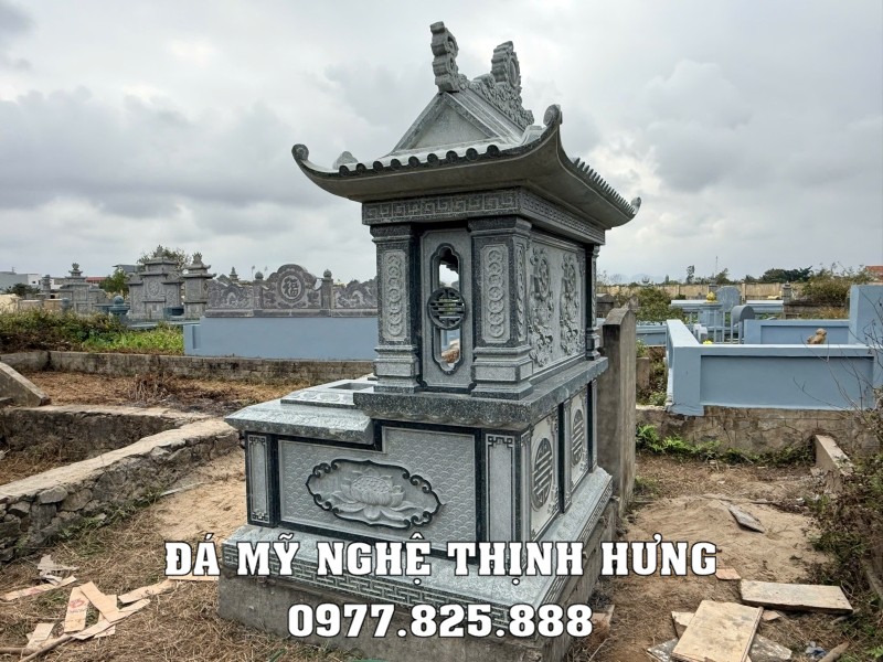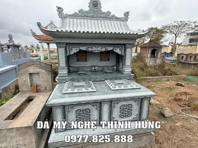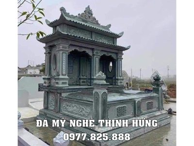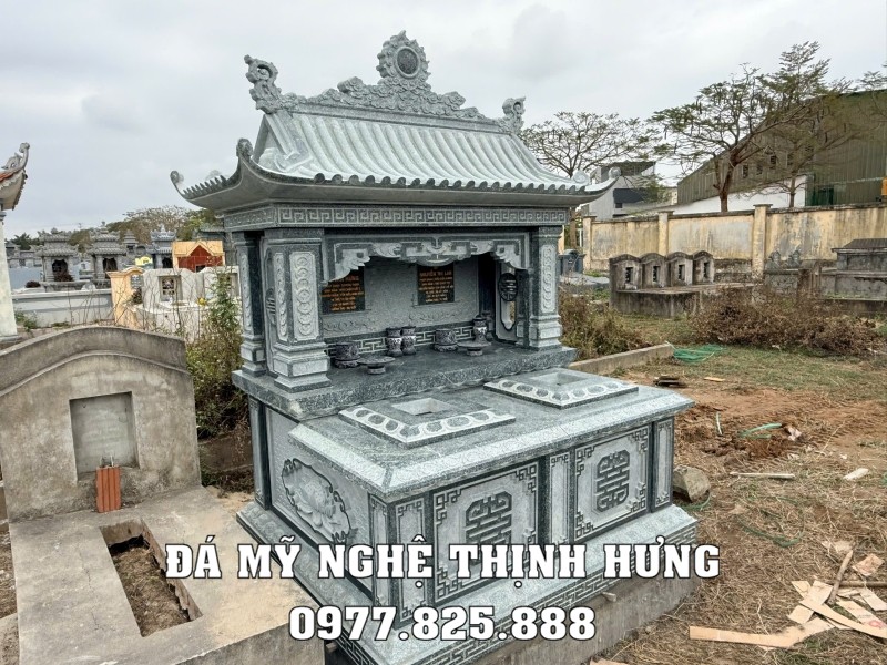 Mẫu mộ đá đôi 1 mái đá granite xanh Bình Định không chỉ đơn thuần là một nơi an nghỉ mà còn là biểu tượng cho tình cảm gia đình và lòng thành kính với tổ tiên. Hãy liên hệ với chúng tôi để được tư vấn và chọn lựa mẫu mộ phù hợp nhất cho gia đình bạn. Xem thêm tại website: Mộ đá