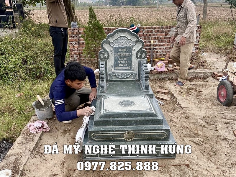 Nếu bạn đang tìm kiếm một mẫu mộ đá đẹp, bền vững và mang tính thẩm mỹ cao cho người thân đã khuất, thì mẫu mộ đá xanh rêu 3 cấp tựa ngai chính là lựa chọn hoàn hảo. Với kích thước 81cm x 127cm, mẫu mộ này không chỉ thể hiện sự tôn nghiêm mà còn mang lại vẻ đẹp trang trọng cho không gian tâm linh.